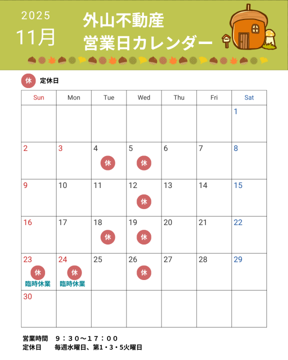 2025年11月の休業日のお知らせ